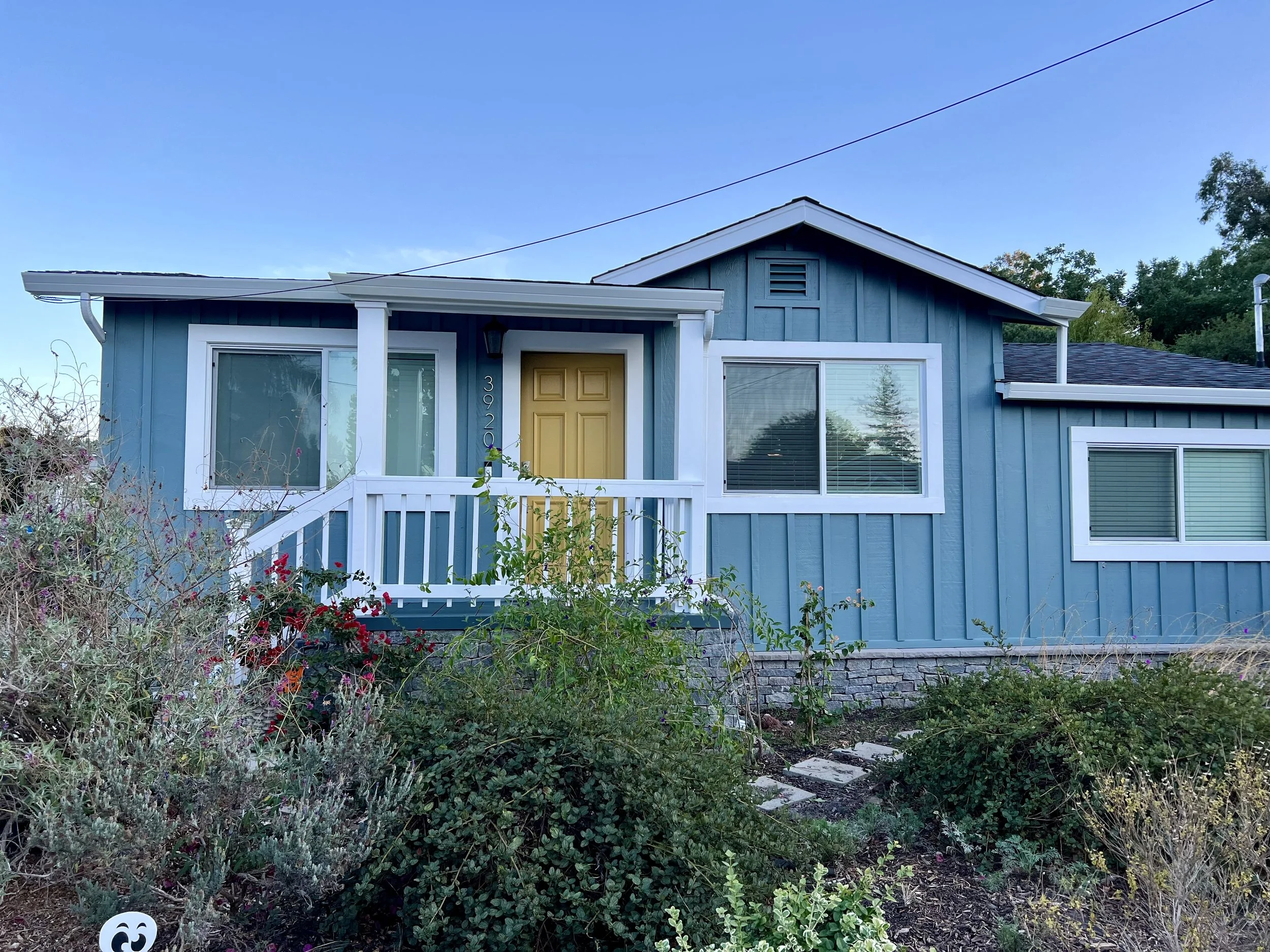 The house color seen in the backyard photos has been repainted to the blue/grey of the street view photo